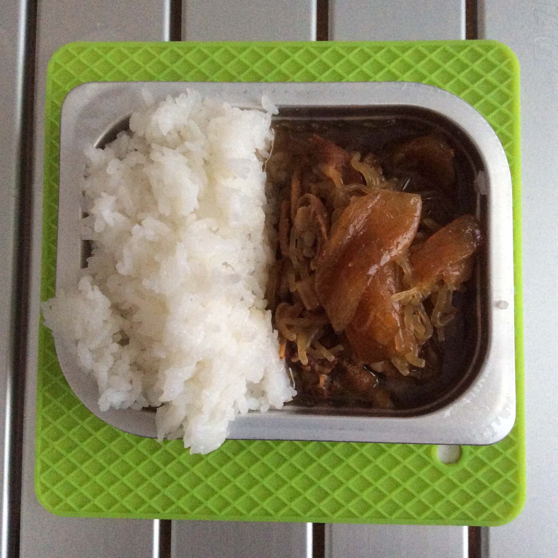 味は濃いめ。不可はない感じ。タマネギは流石に食感は残っているわけもなく、肉はちょいとパサパサ気味かもしれない。しらたきはちょっと嬉しい。
